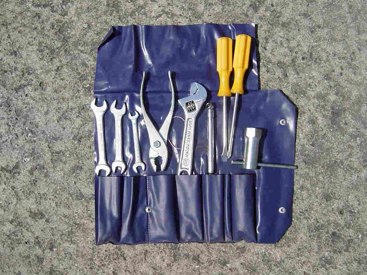 昭和54年当時の車は、大抵これ位の、工具が付属していました。 しかし有効に使われなかったのか、最近の車は、 パンクした時に、タイヤを取り替えるくらいの工具しか 付属工具は、付いて来ていないようです。 4X4ですから、山中でトラブルこともあると思います。 いざと言う時に、これくらいは 標準装備しても良いのでは ・・・