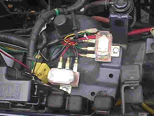 左がホーンSW(右利きなのでハンドルの右に) 右が ホーンリレー付近の写真です