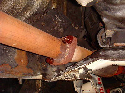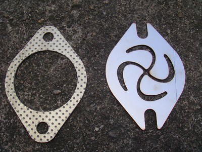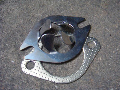 後は、マフラーのフランジの間に、挟みこむだけです。 が、リア側のマフラーの取付ネジを緩める方が上手く行きます。
