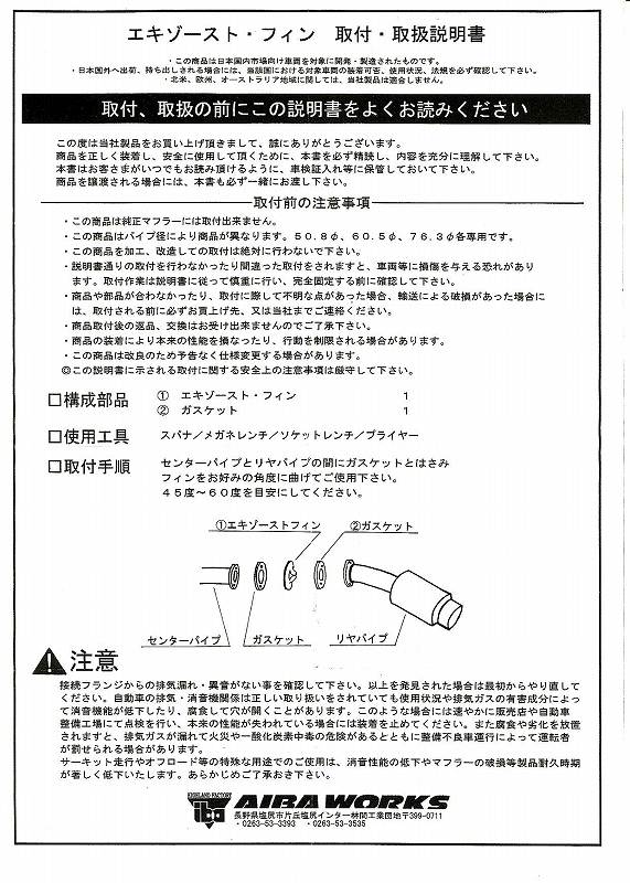 「マフラーの間に、挟む。フィンは、45−60度を目安に曲げてください」 と、書いてあります。