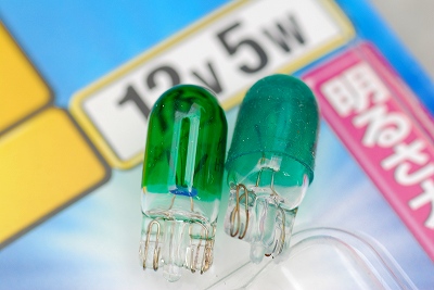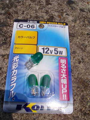 KOITOは、電球が緑色。 純正は、白色ウェッジ球に、緑色の、ビニールカバーを、被せています。 一目瞭然・明るくなりました。