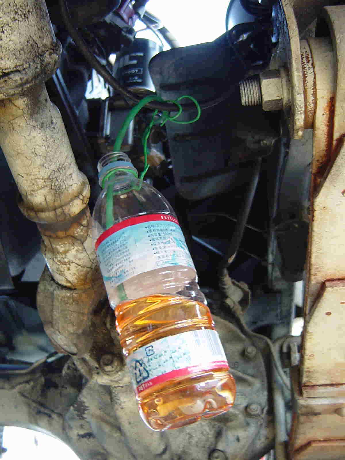 それまでの間、ペットボトルで、ガソリンを受け止めておきます。