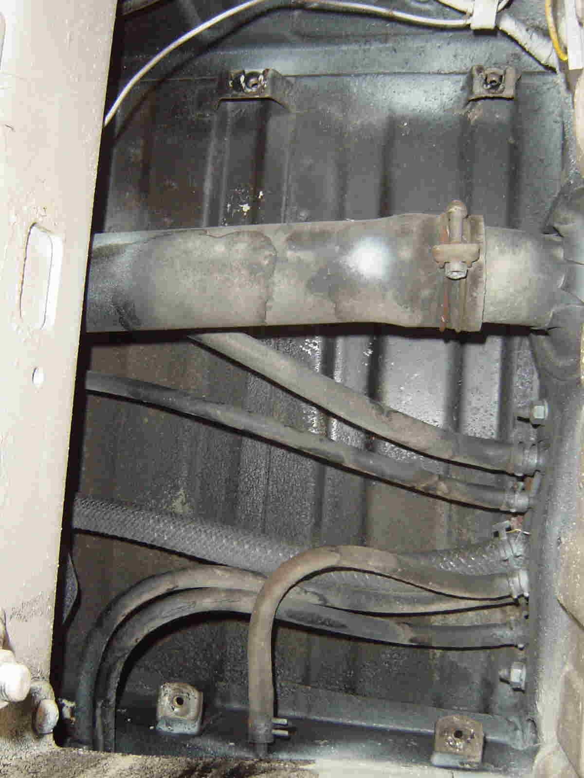 上の太いパイプが、左上・給油口から、右の燃料タンクへ、続いている。