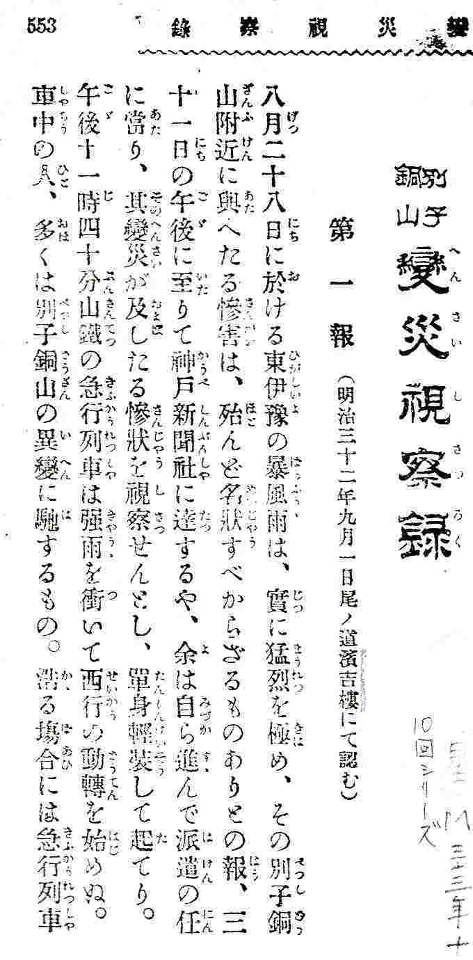 取材した事を、緊迫感のある記事に出来たのは、文筆活動をしていた 「江見水陰」 の成せる業でしょう。