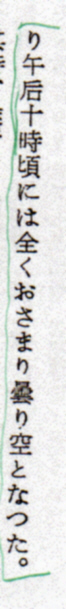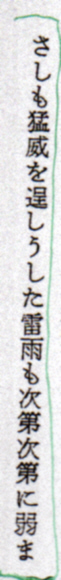「午後10時頃には、全くおさまり曇り空となった。」 とあります。 ハイスピード台風だったと思います。