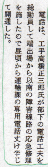 翌日昼頃まで、端出場ーー旧別子間の、電話は、通じなかったようです。