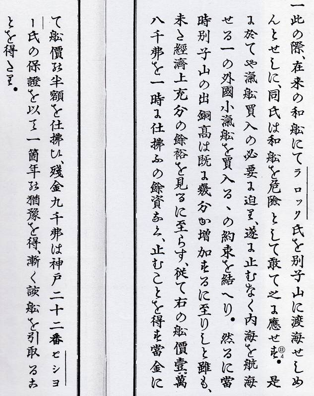 まだ、認知症にもなっていないと思われるが、この時、ラロックが和船を嫌がり、「外国小汽船を買い入れる。」 と、あります。