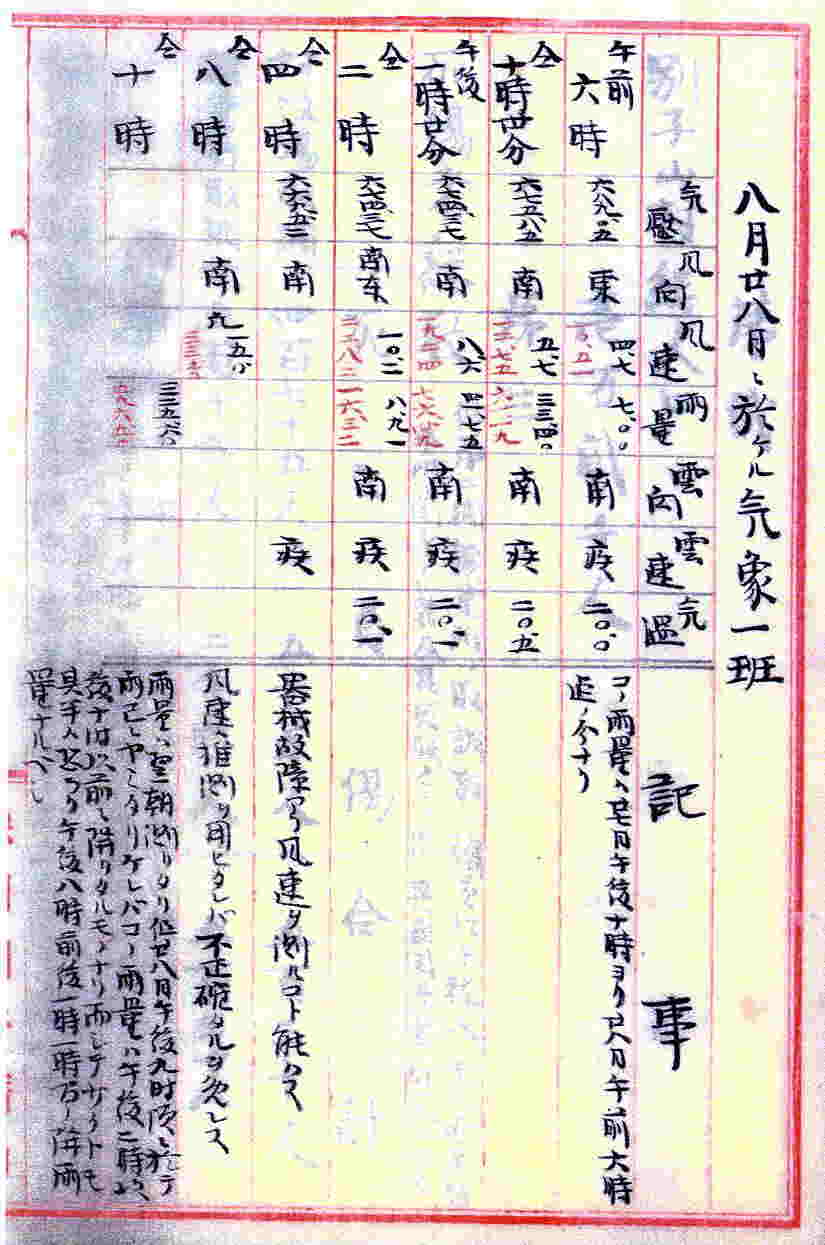 8月29日 午前2時でも、烈風・雨量27,6mmとある。
