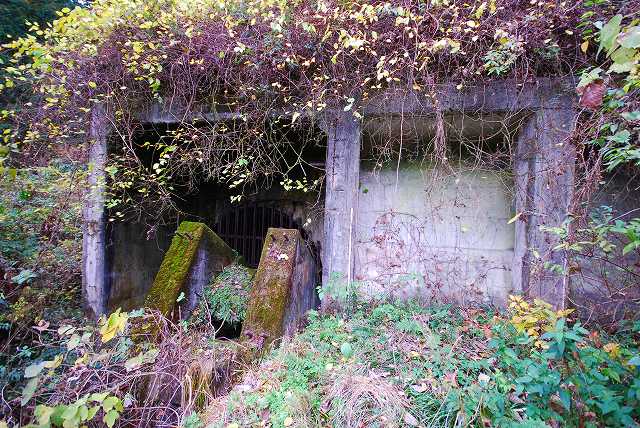 入口には、スチール・ベルトコンベヤーの、土台と、そのボルトが残っている。