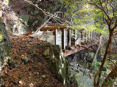13:40 崩壊寸前の橋に到着。 多くの方は、この橋を見て引き返したと言う。