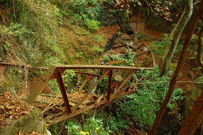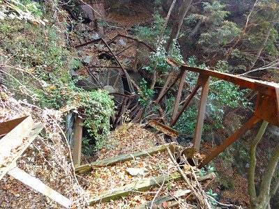 使われなくなって40年余り。今でも木桶が残っている鉄橋も在ります。
