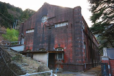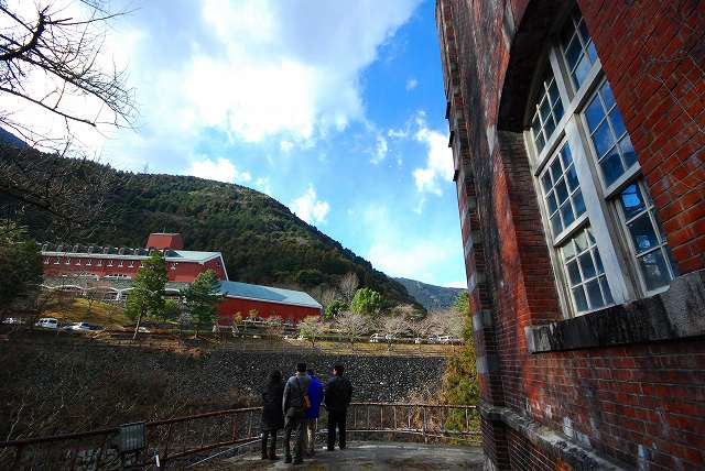 「マイントピア別子」に行くと、対岸に煉瓦造りの建物が見える。
