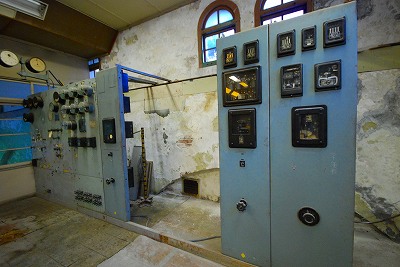 2階に残っている制御盤(基盤になっている板は、なんと大理石で出来ている)