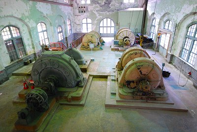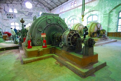 明治45年、2台のシーメンス社の、発電機が据えられたが、当時のものは、左手前のこの1台になった。
