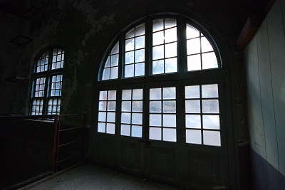 明治の香り漂う窓の明かり。 どこか、教会のような落ち着いた窓。 ステンドグラスにすれば、結婚式場になってしまいそう ・・・