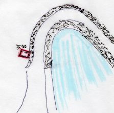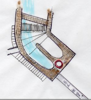 左下の、貯水池の、出口部分は、図面では、丸です。