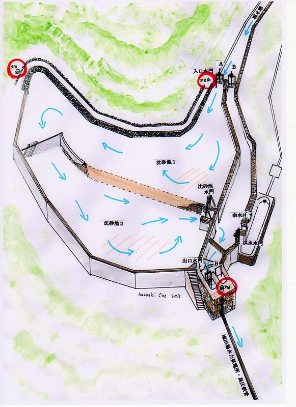 稼動時の、沈砂池の図面から、概略図を作ってみました。