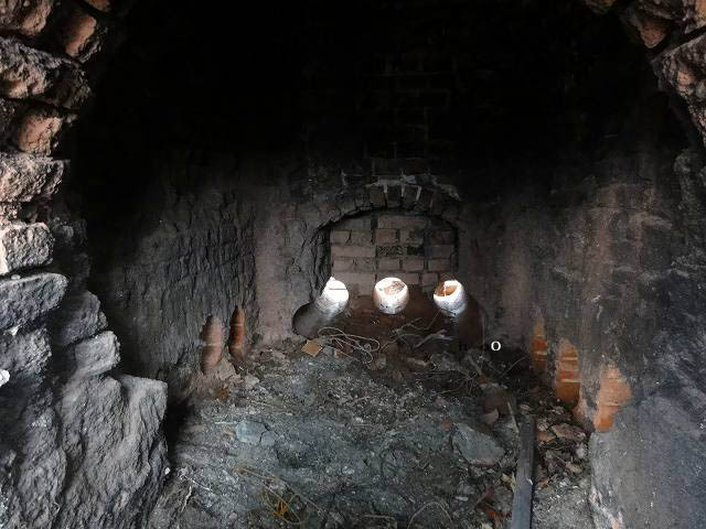 その時に、煙道の穴から空を見たことを覚えています。今回、丁度、工事中で、北側の煙道が何十年ぶりかで再び開けられていました。