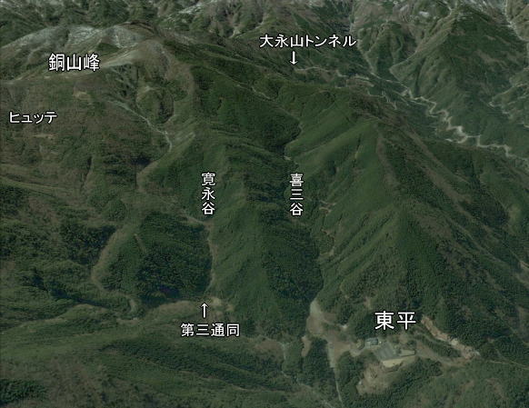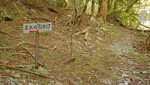 東平から、角石原ヒュッテまでの、登山道・道中に、「寛永谷・取水口」の、案内看板が何箇所かあります。
