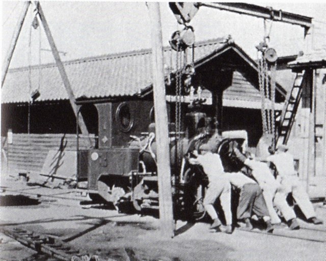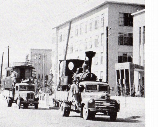 昭和28年、列車としての役目を終えて、道後公園に運ばれる時の写真です。