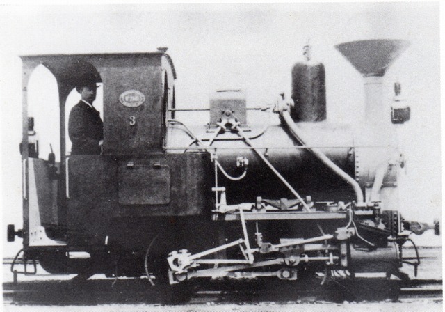 明治25年 ドイツ出荷前の別子3号機 運転台は、ゲーオルク・クラウスらしい。 ソロバン型煙突