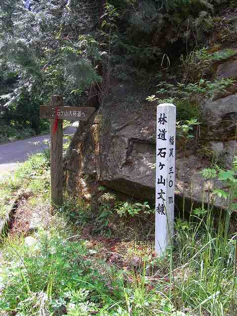 「魔戸の滝」へ行く途中に、林道「石ヶ山丈線」の分岐が、あります。