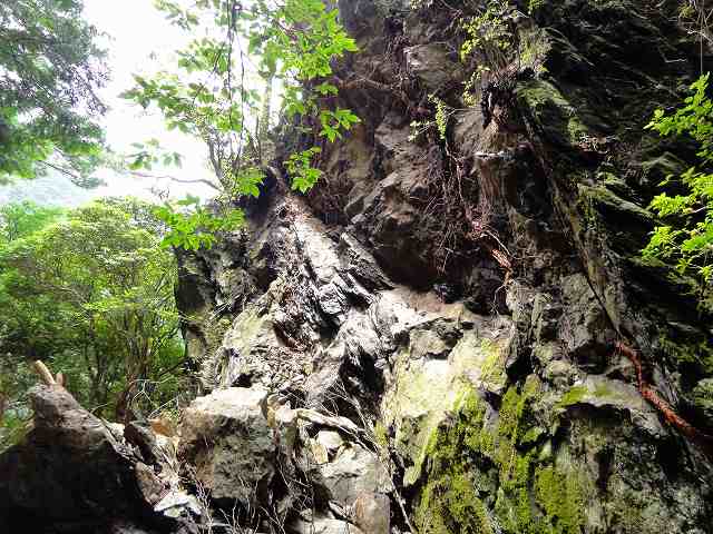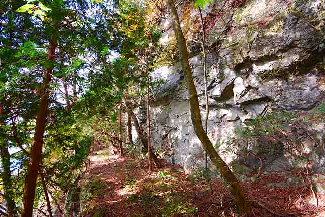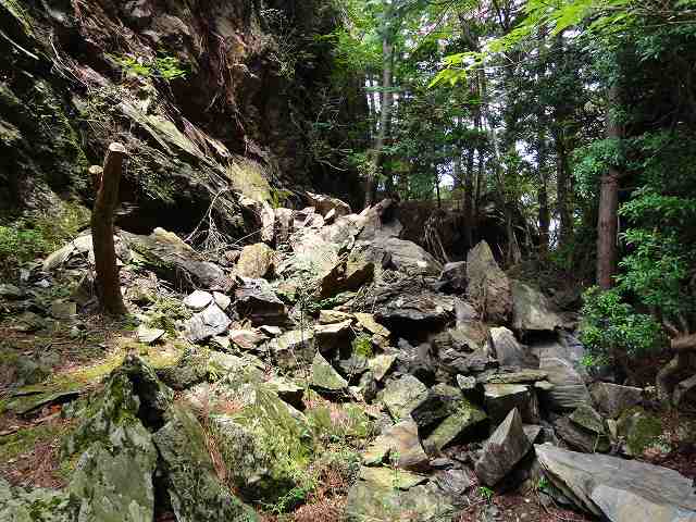 蒸気機関車が、通っていたルートは、岩が落ちてきています。 右の、「石ヶ山丈」側 部分は、今でもレールを敷いても良い状態です。