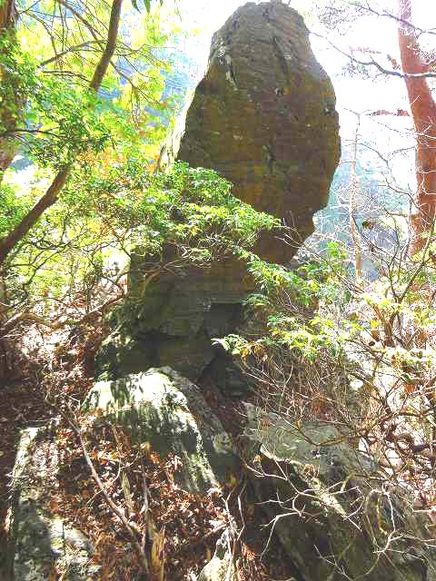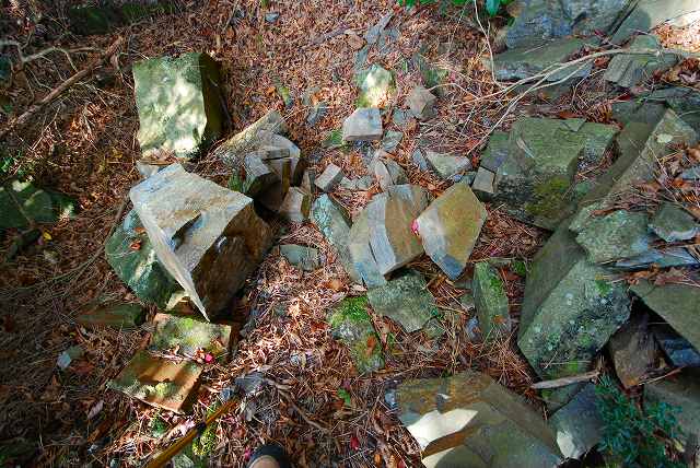 岩石には、あまり詳しくないのですが、 上部鉄道跡を歩いていると、まるで、人間が加工したかの様な、四角い、落石に、よく出会います。 このあたりの、岩は、この様に割れやすいのでしょう。 よって、ダイナマイトで爆破しようとしたのではないか?・・・は、私の、間違いでした。