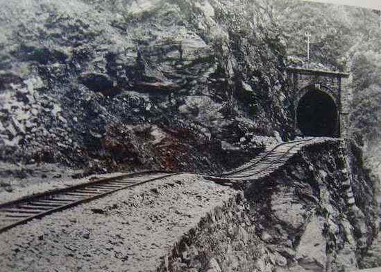 (下部鉄道は、線路が宙ぶらりんになる箇所もあったが、応急復旧を急いだ。)