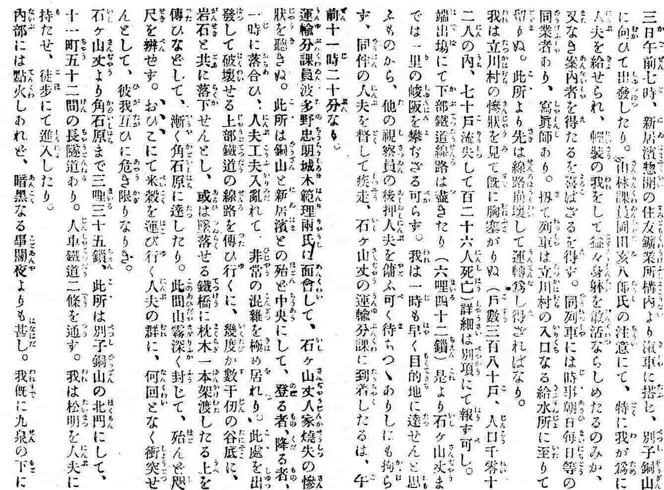 明治32年 8月28日 別子・大水害時の、報告