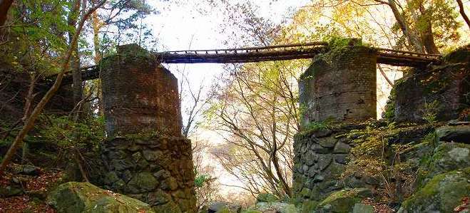 煉瓦造りの、橋台はしっかり残っているのに、橋梁の残骸が見当たらない。