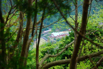 石ヶ山丈停車場から真下を見ると、端出場(現マイントピア別子)が、手に取るように見える