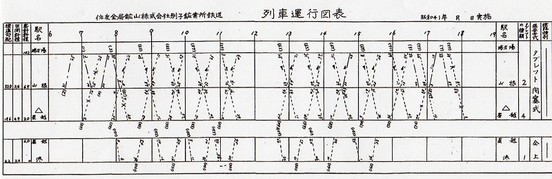 昭和41年の、列車運行ダイヤグラムをみると、すれ違い駅は、土橋ではなく、山根駅に移ったようだ。