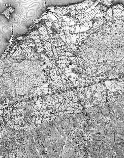 田と畑です。旧国道沿いの「土橋」あたりは、家が(店が)集まっているようです。