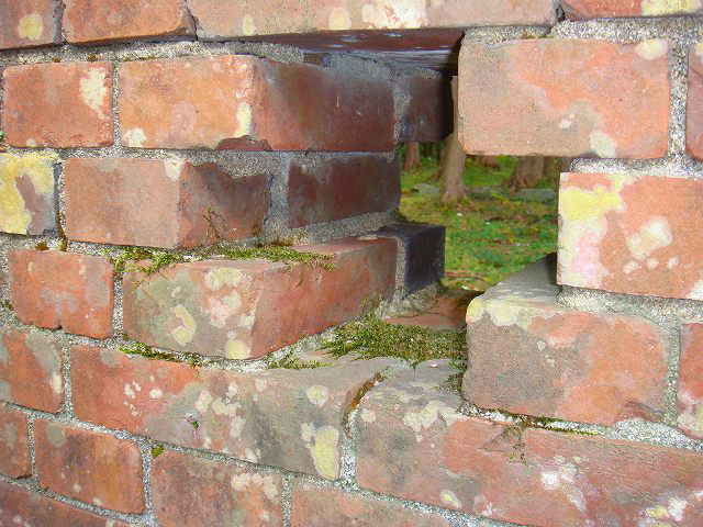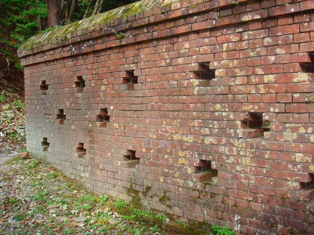 小足谷 接待館 跡 なぜか、重みを感じたレンガ壁です。 なぜ ・・・ ? 拡大写真 最近の、住宅には、この様に、ムクの縦積みは、まず無いでしょう。 なるべく、敷地を広く使いたい。。。 ”判ります ”その気持ち !!!” 表面だけでも、レンガ作りで、重圧そうに見せたい。 でも、なにか違う気がする。 100年前の、接待館の、重み ・・・・