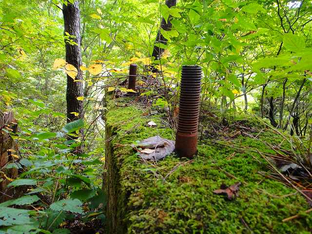 煉瓦の上には、何かの機械を固定したボルトが残っています。