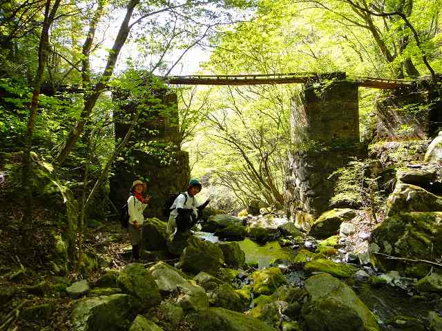 上部鉄道跡まで、降りてきました。一本松停車場へ降りる予定でしたが、逆方向に、5分歩けば唐谷三連橋へ行けるので、寄り道しました。