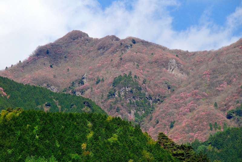 11:00 稜線にでる。 後ろには、ちらほら、ミツバツツジ。