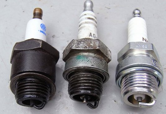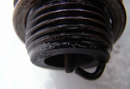 発動機は、回転数が低いので、もう少し熱価の低いプラグでも良いはずです。(左2本も、かぶり気味です)