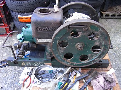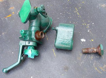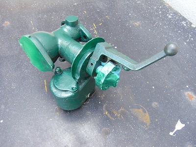 真ん中の部品は、始動用のガソリン壺。 写真の、レバーで、暖まれば、ガソリンから、軽油(灯油)に、切り替えます。
