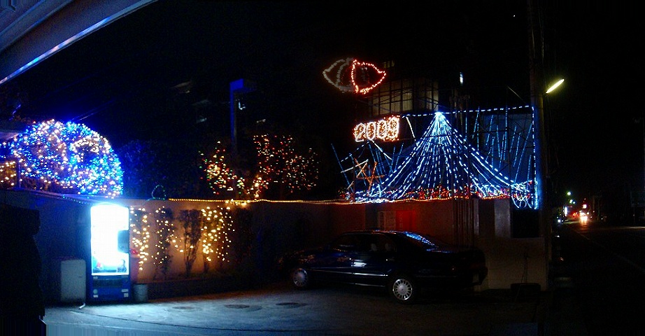 昨年の、「ブーメラン」 を、改良しました。 時間の合間で、飾り付けをしましたので、まだ電球が残っているのですが、 「2009」 の、飾りで今年は終了。 フーー 疲れました。 合計 16,431個 になりました。 ブーメランの製作は、こちらから 。 動画 ブーメラン 正面