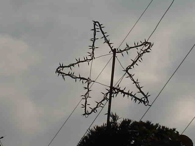太目の針金で、星の形を作ります。 ポールは、TVアンテナ用を使いました。(錆に強いです)