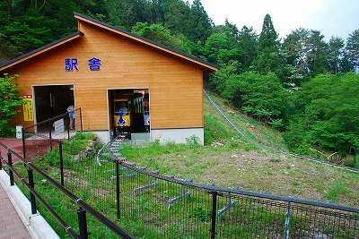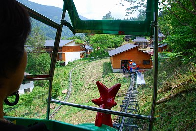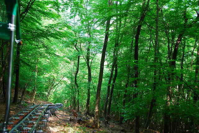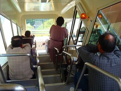 右は、ケーブルカー内部の写真 (傾斜に沿った室内が、解かりますか ?)