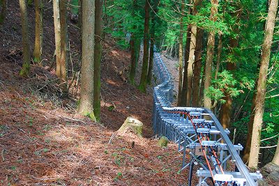 観光が、主目的でしょうが、間伐するのに歩いて上がると、2時間くらいはかかるのが、作業員は、十数分で現場到着できます。