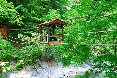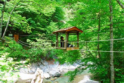 川の両岸に、ワイヤーを張って、ゴンドラを吊るしています。
