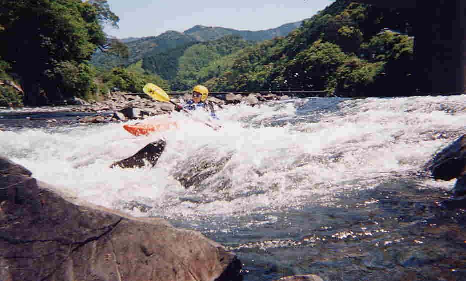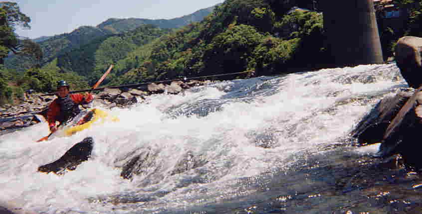 いつも 松山カヌークラブは ここで 1時間以上遊ぶ (中には 一日ここで スポットプレイを 興ずる方もいる)