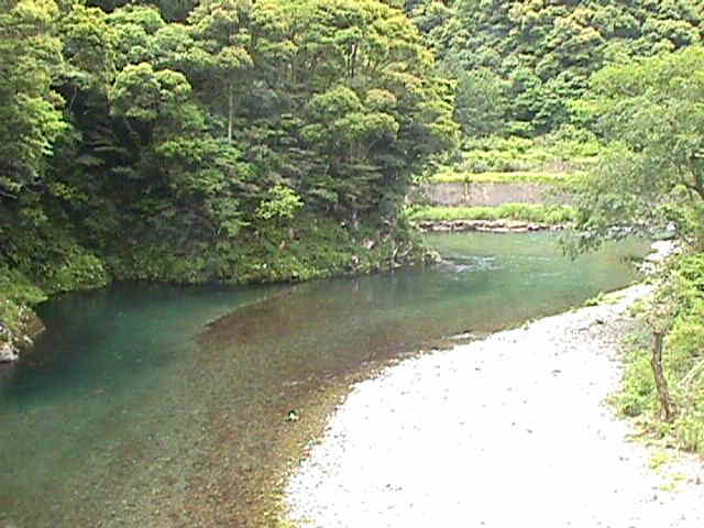 出発地点の 沈下橋付近の 映像です。 水は 写真右から 左方向に 流れています。