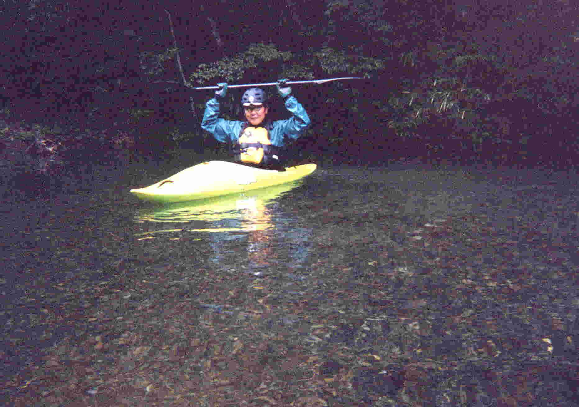黒尊川の ミネラルウォーター・カヌーです。晴れていれば 艇の影が 川底に映り もっと浮遊感覚が 増すはず ・・・