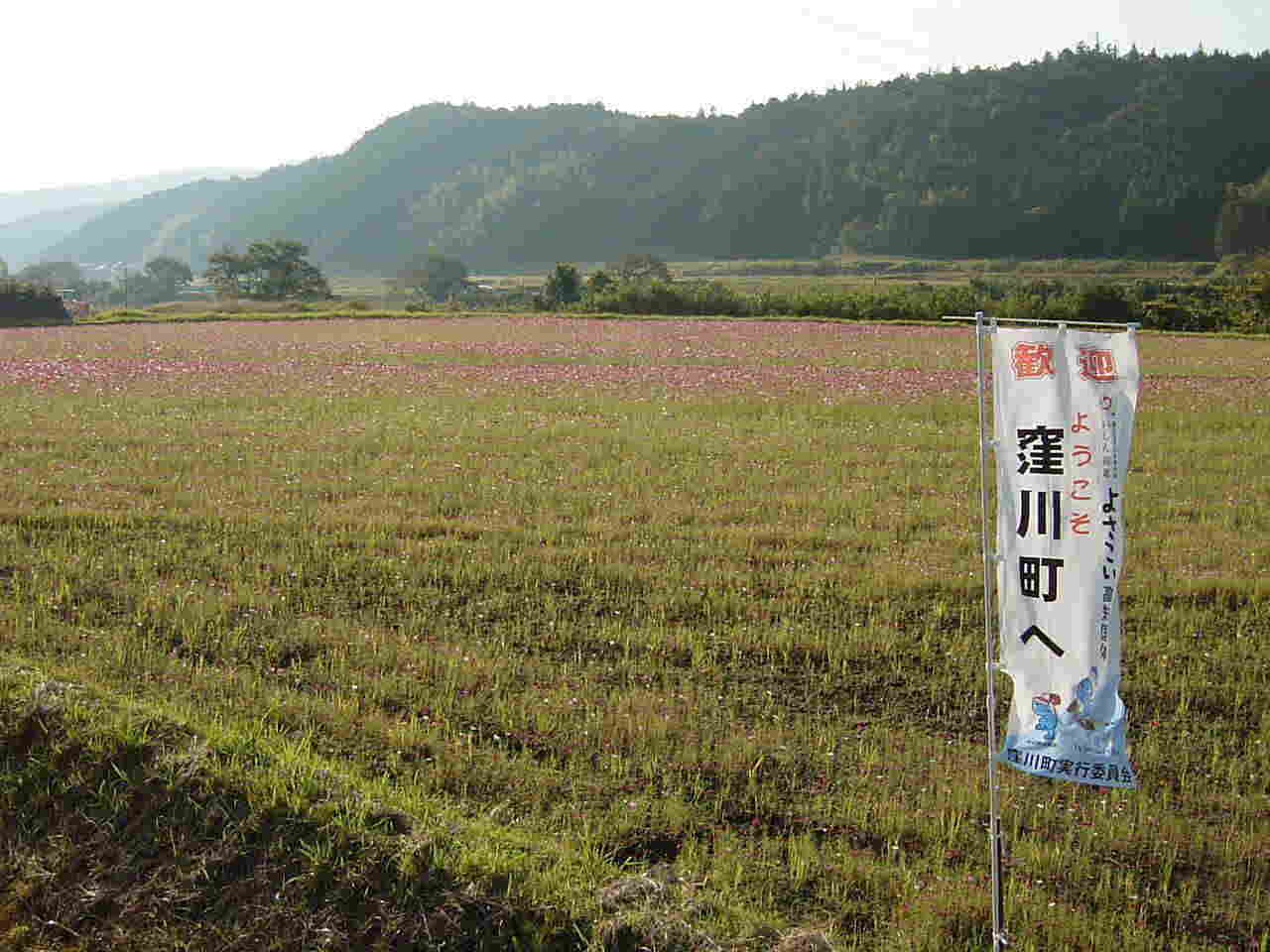 国体に合わせて満開となるように、あちこちの田んぼで、コスモスを植えていました。