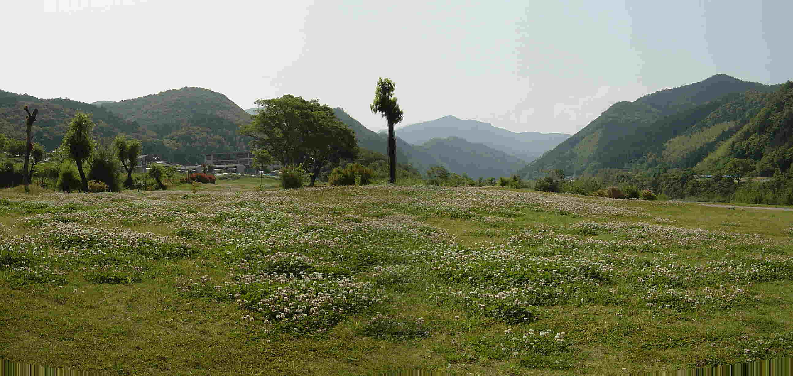 今年は、キャンプ場の芝生に シロツメグサ ? が、咲き誇っていました。